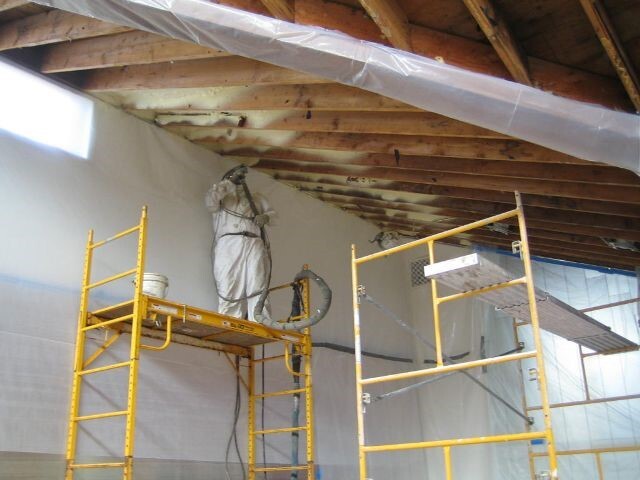 As for the sloped shed roof above the common areas,a different approach was theshed roof was a 6” enclosed cavity, with 6” of fiberglass already occupying the cavity, we knew there was only so much we could do without first removing some or all of the sheet rock to gain full access. We wanted air-seal first, to make sure that the roof over the cavity, and/or the cavity itself, was not further contributing moisture load to the home. To maximize the R-value for that limited cavity all fiberglass was removed and a 6” thick application of Closed-Cell Spray Polyurethane Foam (CC SPF) was applied to the underside of the roof deck. The resulting R-value averaged R-38, double that of the R-19 fiberglass removed.